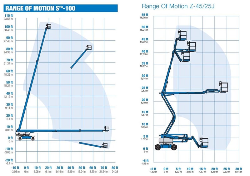 Để chọn đúng loại xe nâng người boom lift phù hợp, bạn cần biết Phạm vi chuyển động của mẫu xe mà bạn đã chọn.